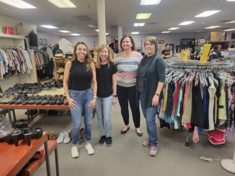 From left to right, Melissa Strassner, Anne Pollack, Melissa Zornitta, and Ivy Clinton pose while volunteering at The Spring of Tampa Bay for the Inaugural WLI Uplift campaign.