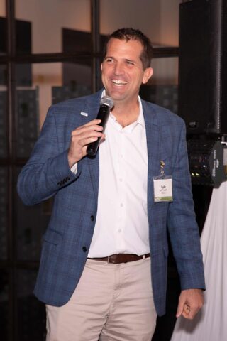 ULI Tampa Bay Chair, Lyle Fogarty, recaps the 2023 year, recites his original holiday poem, and selects raffle winners at the Holiday Bash 2023 on December 6, 2023.