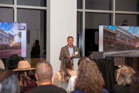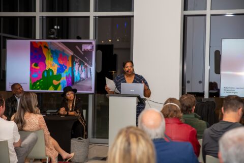 Michele Smith, Executive Director of the Tampa Arts Alliance speaks to an audience of artists and developers about the goal of the Art In Place initiative in Tampa Bay. Art in Place is a global cohort of ULI National and District Councils working to connect artists, developers, and community voices to drive more inclusive and participatory real estate outcomes. ULI Tampa Bay was selected through a highly competitive process to participate in this next step in ULI’s ongoing commitment to Creative Placemaking.