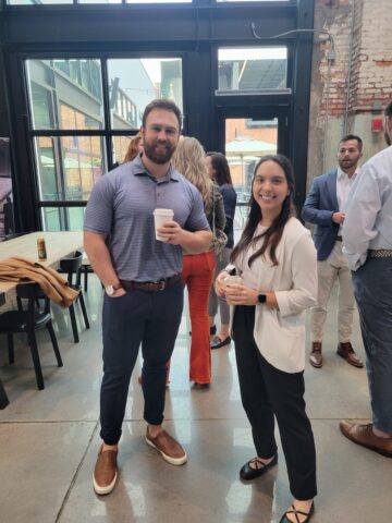Our Local Product Council members networked with each other at the Kickoff at Rooftop 220 on April 29, 2024! Our Mixed-Use, Placemaking, and Housing Product Council chairs introduced themselves and each council gathered to establish their goals for the year. Two of our Local Product Council members, Ed Rogers and Robyn Huber pose together at the Local Product Council Kickoff.
