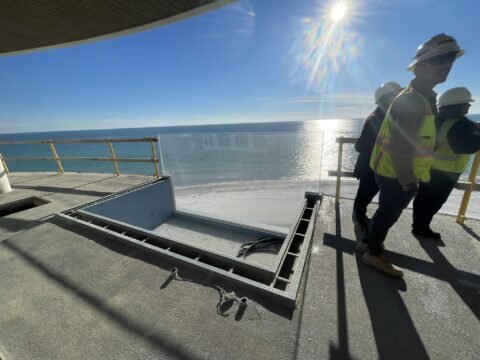 Photo of Ritz Carlton Residences under construction by Coastal Construction at the YLG Bayshore Hard Hats and Happy Hour event on November 8, 2023.